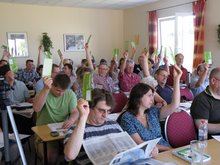 05.07.10 - 37 bündnisgrüne Delegierte diskutierten am Samstag, 03. Juli, auf unserem kleinen Parteitag in Woltersdorf über nachhaltige Wirtschafts- und Haushaltspolitik in Brandenburg. Gleich sieben Anträge wurden eingereicht und beschlossen: Rekord für einen Brandenburger Landesparteirat! Rekordverdächtig auch der Jubel über den deutschen Sieg gegen Argentinien im Anschluss - hier findet ihr alle Beschlüsse, Fotos und Videos vom heißesten Tag des Jahres.