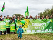 24.08.14 - In einer symbolischen, rund acht Kilometer langen Menschenkette zwischen den bedrohten Orten Kerkwitz in Deutschland und Grabice in Polen haben heute rund 7.500 Menschen gegen die Braunkohlepläne der rot-roten Landesregierung in Brandenburg sowie der polnischen Regierung demonstriert. Auch die SpitzenkandiatInnen Ursula Nonnemacher und Axel Vogel sowie der Landesvorstand mit den Vorsitzenden Petra Budke und Benjamin Raschke von BÜNDNIS 90/DIE GRÜNEN Brandenburg waren angereist.