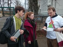 18.12.15 - Schüler in Neuruppin wollen keine Massentierhaltung Landesvorsitzender der Brandenburger Grünen sammelt in kurzer Zeit fast Hundert Unterschriften fürs Volksbegehren Zusammen mit Engagierten aus der Region sammelte der Landesvorsitzende von Bündnis 90/Die Grünen Clemens Rostock am Donnerstag vor dem Evi und dem Schinkel-Gymnasium in Neuruppin Briefwahlanträge für das Volksbegehren gegen Massentierhaltung. Innerhalb kürzester Zeit kamen dabei an die Hundert Unterschriften zusammen. Rostock…