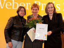 07.12.11 - Heute wurde die Gemeindevertreterin Petra Budke mit dem Helene-Weber-Preis des Bundesfamilienministeriums ausgezeichnet. „Damit wird Petra für ihr beharrliches Engagement in ihrer Heimat geehrt“, freut sich unsere bündnisgrüne Bundestagsabgeordnete Cornelia Behm. Der Landesverband gratuliert herzlich!