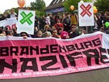 01.06.10 - Mit einer Sitzblockade und weiteren Kundgebungen in der Bernauer Innenstadt hat das Brandenburger Bündnis gegen Gewalt, Rechtsextremismus und Fremdenfeindlichkeit zusammen mit zahlreichen Vereinen und Initiativen sowie den Bürgerinnen und Bürgern vor Ort erfolgreich den Naziaufmarsch in Bernau blockiert. Mit dabei waren auch die bündnisgrüne Landesvorsitzende Annalena Baerbock sowie der Fraktionsvorsitzende im Brandenbuger Landtag Axel Vogel.