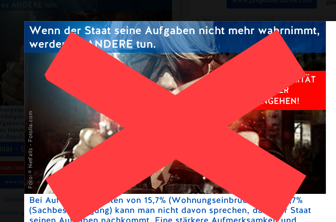 Eines der Banner trägt den Slogan: `Selbstjustiz ist die neue Polizei - die Politik schaut weg. Wir schauen hin´; ein anderes eine Frau, die mit zwei Waffen Richtung Kamera feuert, unterlegt mit dem Slogan: `Wenn der Staat seine Aufgaben nicht mehr wahrnimmt, werden es andere tun.´ ,,Die Kampagne der AfD-Jugendorganisation ist geradezu fahrlässig populistisch - auch wenn sie sich inzwischen davon distanziert", sagte Ursula Nonnemacher.