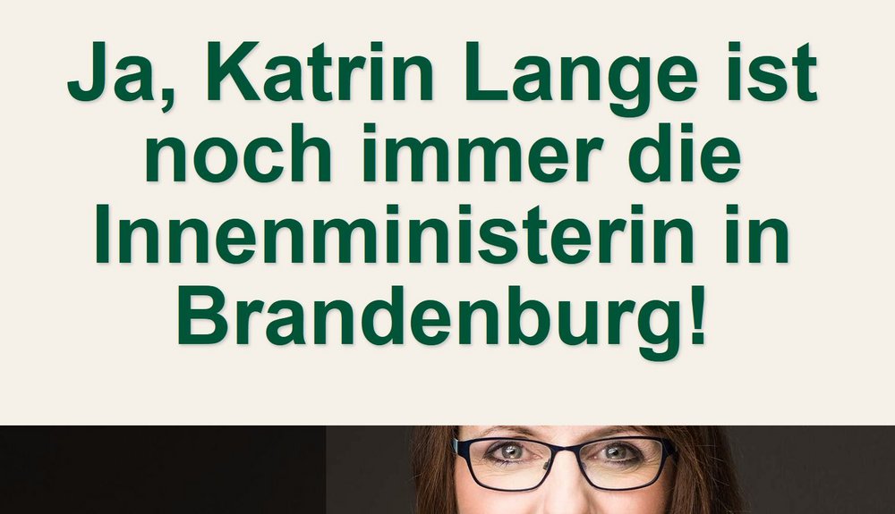 Die Brandenburger Bündnisgrünen halten SPD-Innenministerin Katrin Lange nach der Entlassung des Verfassungsschutzchefs Jörg Müller für nicht länger tragbar. Aus ihrer Sicht ist ein Rücktritt unausweichlich. Um den politischen Druck zu erhöhen, hat die Partei eine Kampagnenseite aufgesetzt, die bis zu Langes Rücktritt online bleiben soll, sowie eine Petition initiiert.