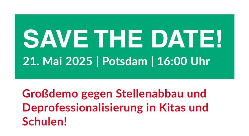 Die Bündnisgrünen unterstützen die von der Gewerkschaft Erziehung und Wissenschaft (GEW) organisierte Demonstration gegen den bildungspolitischen Sparkurs der Landesregierung. Die Demonstration findet am Mittwoch, 21. Mai 2025, um 16:00 Uhr in Potsdam statt. Startpunkt ist der Luisenplatz, von dort führt der Demonstrationszug zum Brandenburger Landtag.