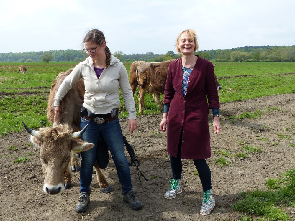 Heute Vormittag hat die Brandenburger Landesvorsitzende von BÜNDNIS 90/DIE GRÜNEN PETRA BUDKE die Bio-Bäuerin Anja Hradetzky als Grüne Gründerin ausgezeichnet. Den Preis vergibt der Brandenburger Landesverband seit Mai 2016 an Existenzgründerinnen in der Mark Brandenburg, die sich mit originellen und nachhaltigen Ideen selbständig gemacht haben, um ihnen mehr Präsenz in der Öffentlichkeit zu geben und ihren Mut und Geschäftssinn zu würdigen. Anja Hradetzky ist die 19. Grüne Gründerin. PETRA BUDKE übergab die Urkunde dafür, dass sich die 31-Jährige im Dezember 2016 als Trainerin für wesensgemäße Tierhaltung selbständig gemacht hat: „Sie haben sich als Frau in eine männliche Domäne vorgewagt und sind Europas einzige Kuhflüsterin. Stressarmer Umgang mit den Kühen, ohne Schreien, ohne Gewalt, das zeigen Sie eindrucksvoll, wenn Sie auf Ihrem Ökohof „Stolze Kuh“ die Kühe mit ihren Kälbern zusammenbringen. Sie leisten Bildungsarbeit und geben Seminare, in denen Sie die Methoden zu „Low Stress Stockmanship“ vermitteln, also dem stressarmen Umgang mit Herdentieren. Darüber hinaus halten Sie Rinder alter Rassen, die vom Aussterben bedroht sind.“