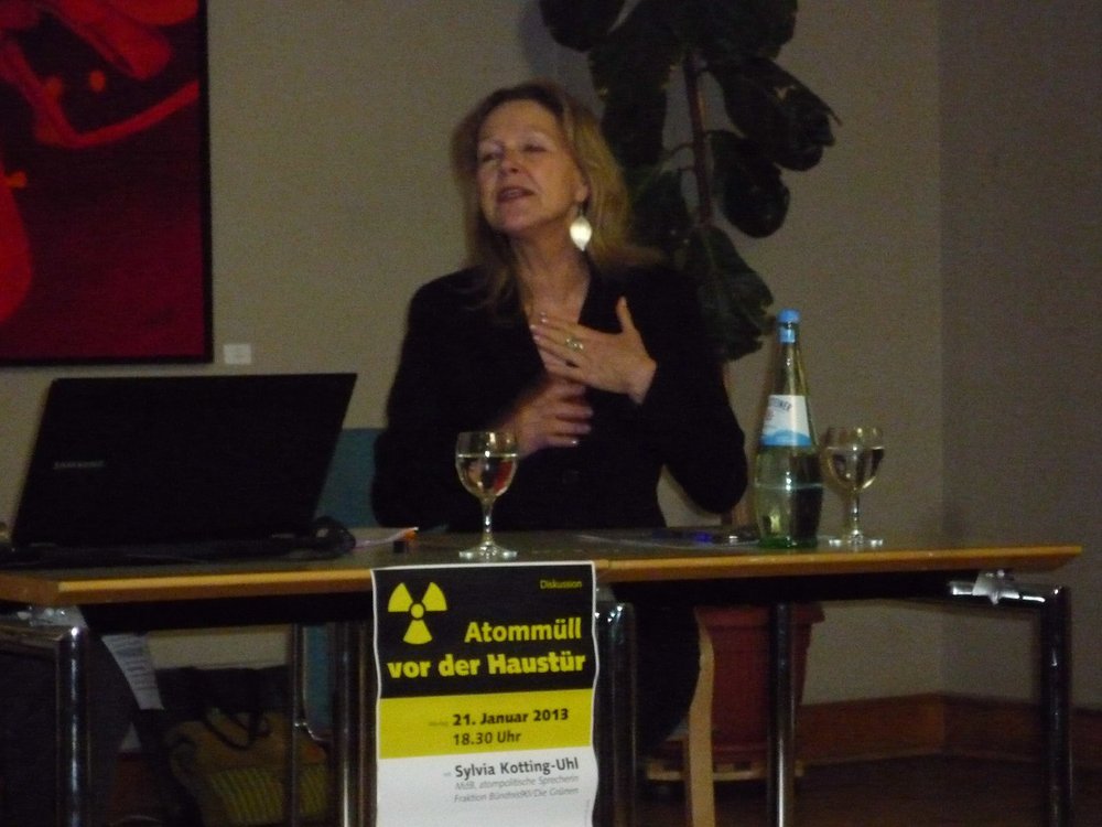 Zwar sagte Kotting-Uhl, für sie sei die Akzeptanz vor Ort letztlich kein Kriterium, da niemand ein Endlager in seiner Umgebung haben wolle; Priorität habe die größtmögliche Sicherheit. Gleichzeitig betonte sie aber: "Transparenz ist absolut notwendig. Die Menschen sollen sich nicht über den Tisch gezogen fühlen."
