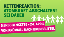 Gemeinsam mit vielen anderen Initiatoren rufen wir für Samstag, 24. April zum Protest gegen den schwarz-gelben Ausstieg aus dem Atomausstieg auf. Wir Brandenburgerinnen und Brandenburger werden uns rund um Elmshorn nordwestlich von Hamburg in die Antiatom-Menschenkette einreihen. Wo genau, siehst du hier.