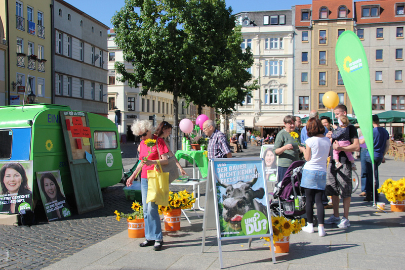 Am Samstag, dem 14. September 2013 waren Annalena Baerbock und Wolfgang Renner, Spitzenkandidaten zur Bundestagswahl 2013 von BÜNDNIS 90/DIE GRÜNEN Brandenburg zu Gast in Cottbus. Gemeinsam betreuten sie einen bündnisgrünen Wahlkampfstand am Altmarkt und verschenkten Sonnenblumen.